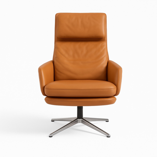 Design Antonio Citterio, 2019Gestell Viersternfuß Alu poliertBezug Polster Leder Premium cognacSchale Rücken/Sitz Leder Forte Decor cognacFilzgleiter für HartbodenHocker B 60cm, T 60cm, H 42,2cmB69cm T83,5cm H101-106cm SH41,5cm