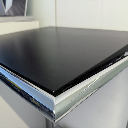 Gestell verchromtPlatte Kernesche Massivholz 2cmoffenporig lackiert schwarzPlatte in drei Positionen verstellbarB 60cm T 50cm H 109cm