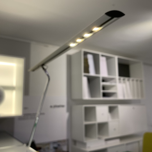 Reflektor Alu natur Stab chrom, 1 Kugelgelenk Sockel grau 4x 3W-Power-LED warmweiß dimmbar in 4 StufenTrafo in Sockel D= 13,5cm Höhe 37cm, Breite 50cm